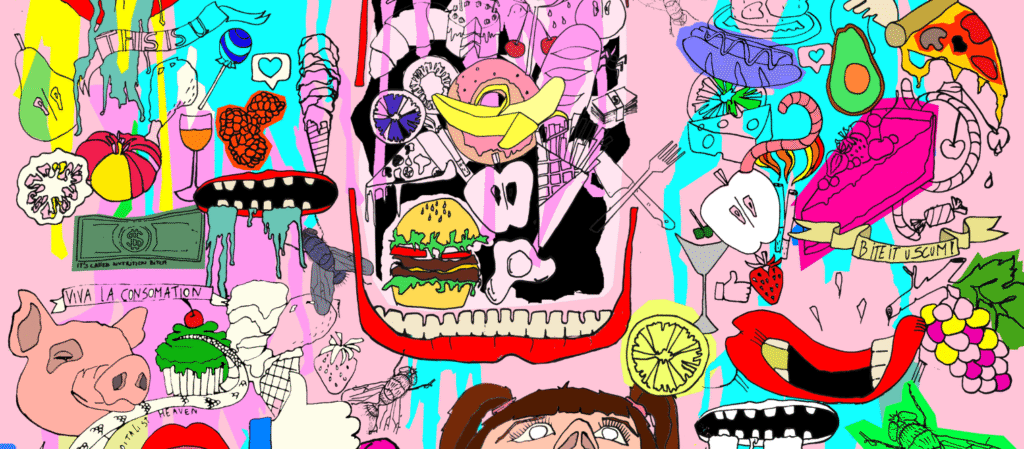 “Feed the Pigs” was born out of a fascination with our collective greed—the kind that creeps into everyday moments. The urge to consume more than we need. The fear of not having enough. The impulse to take, even when we already have plenty. This capsule collection explores those cravings with humor and honesty, using Nanook’s signature style: bold colors, hand-drawn prints, and absurdity that makes you think.